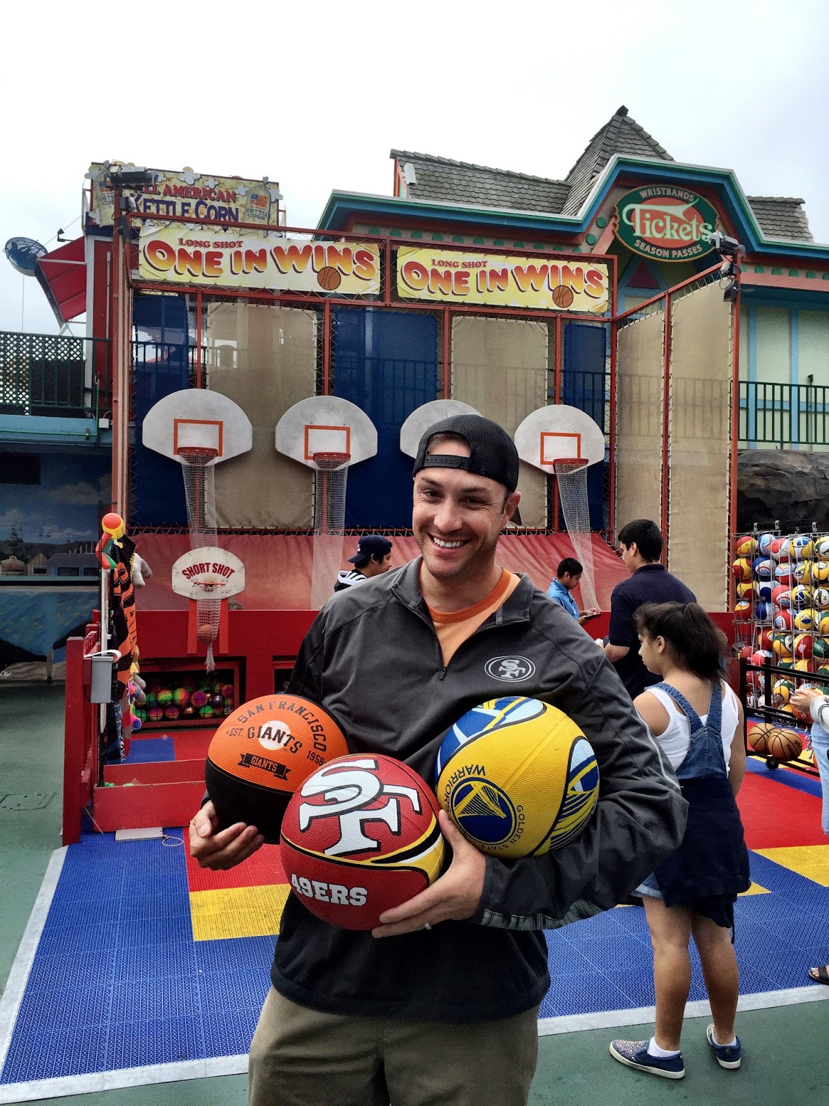Kids thought dad was pretty awesome to make all the shots to win so many basketballs.